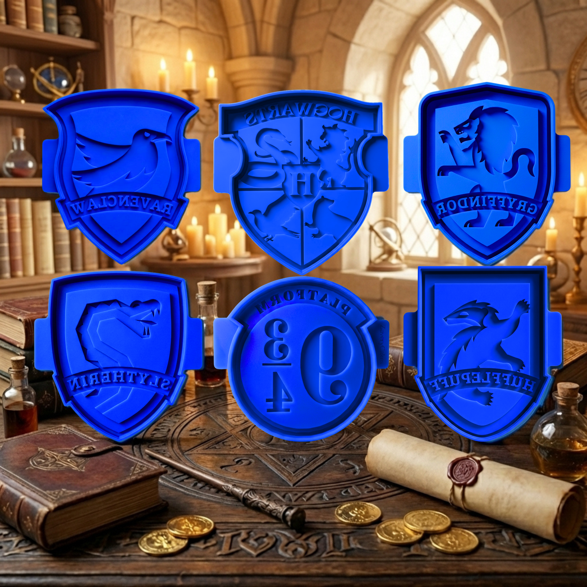 β Your House Crest mold (choose: Gryffindor, Slytherin, Ravenclaw, or Hufflepuff) β Platform 9ΒΎ mold β Hogwarts Crest mold